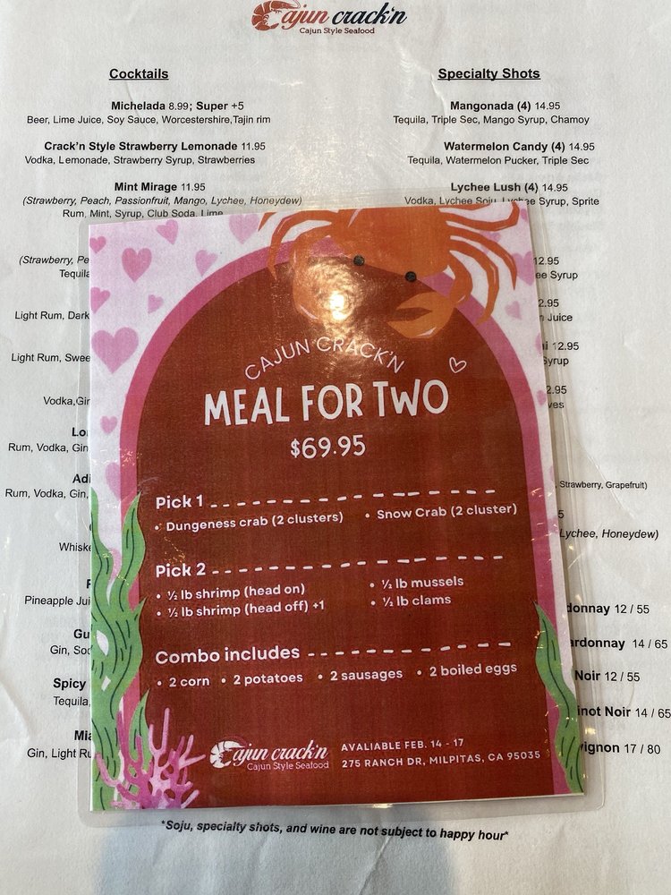 At Cajun Crack’n Milpitas, we bring the vibrant flavors of Cajun and Creole cuisine to life. Nestled in the heart of Milpitas, our inviting and spacious restaurant is perfect for gatherings with family or friends. Our signature seafood boils, especially the head-on shrimp drenched in our rich and flavorful sauces, keep customers returning for more. With a full bar, happy hour specials, and an array of delectable dishes, we cater to all tastes. Our attentive staff is dedicated to providing exceptional service, making every visit memorable. Come experience the lively atmosphere and indulge in the ultimate seafood celebration!